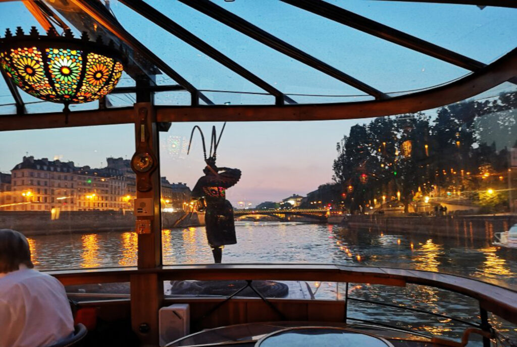 Un diner sous les étoiles de Paris au cœur historique de la Ville Lumière. Au soleil couchant, vous embarquez sous le Pont des Arts, rive gauche, face au Louvre. En voguant sur la Seine, pour une parenthèse de bonheur gastronomique et visuelle de deux heures.